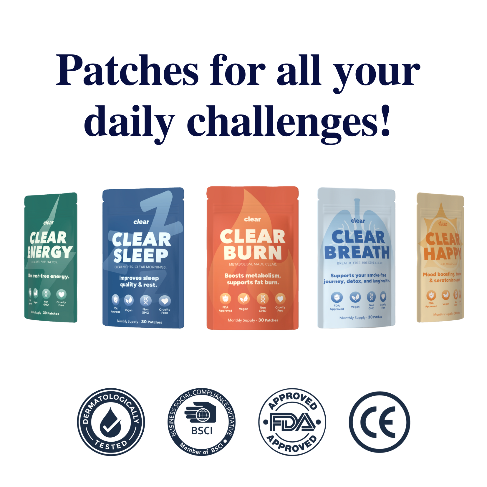 Many people struggle with falling or staying asleep due to stress, anxiety, or poor sleep hygiene. The Clear Sleep patches help promote relaxation and improve sleep quality by delivering melatonin and magnesium directly to the body.