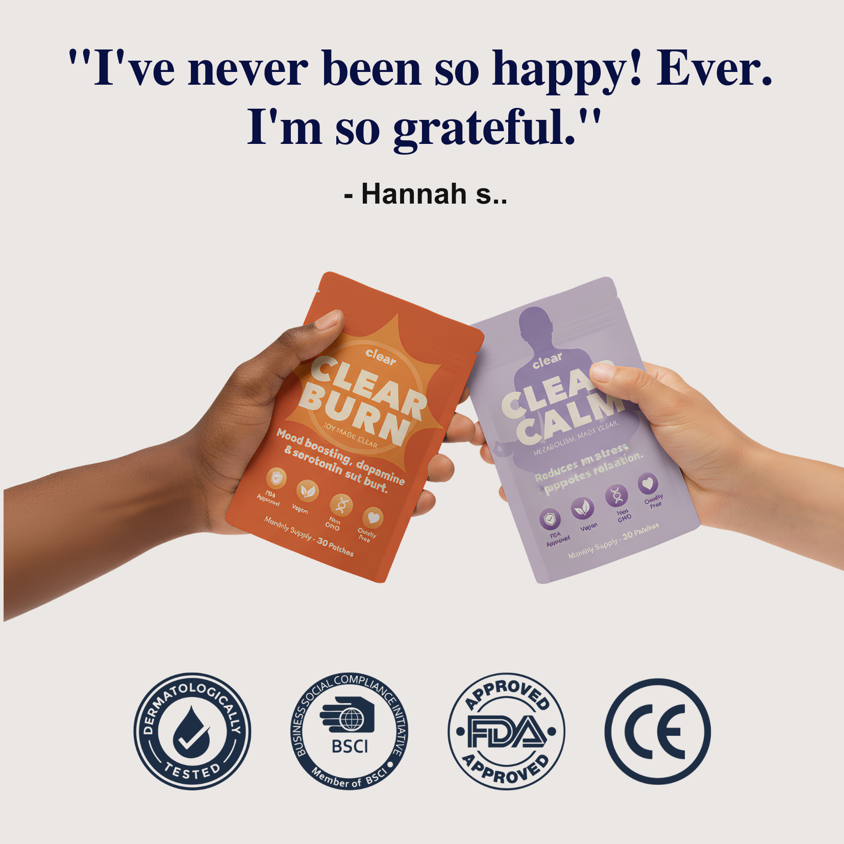 In today’s high-pressure world, feeling overwhelmed and stressed is a common struggle. The Clear Happy patches help promote a sense of calm and balance by using probiotics and L-Theanine, which work to reduce stress and enhance mood.