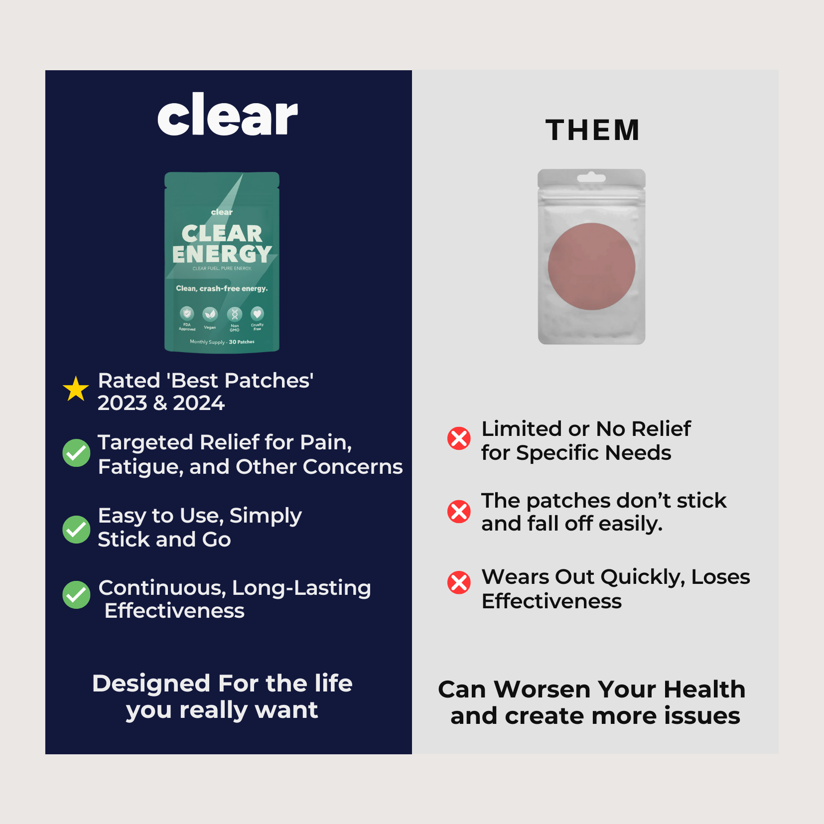Feeling drained, sluggish, or mentally foggy is something many people experience, especially in today’s fast-paced world. The Clear Energy patches are designed to combat fatigue by providing a sustained release of energizing ingredients, like Vitamin C and Omega-3, to help you stay alert and energized throughout the day