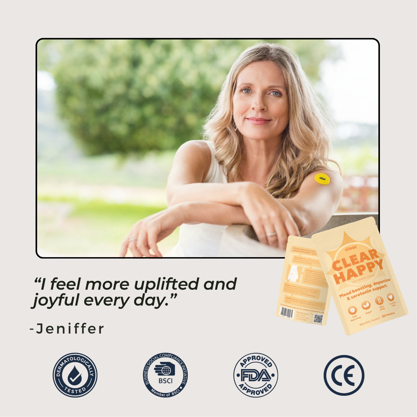 In today’s high-pressure world, feeling overwhelmed and stressed is a common struggle. The Clear Happy patches help promote a sense of calm and balance by using probiotics and L-Theanine, which work to reduce stress and enhance mood.